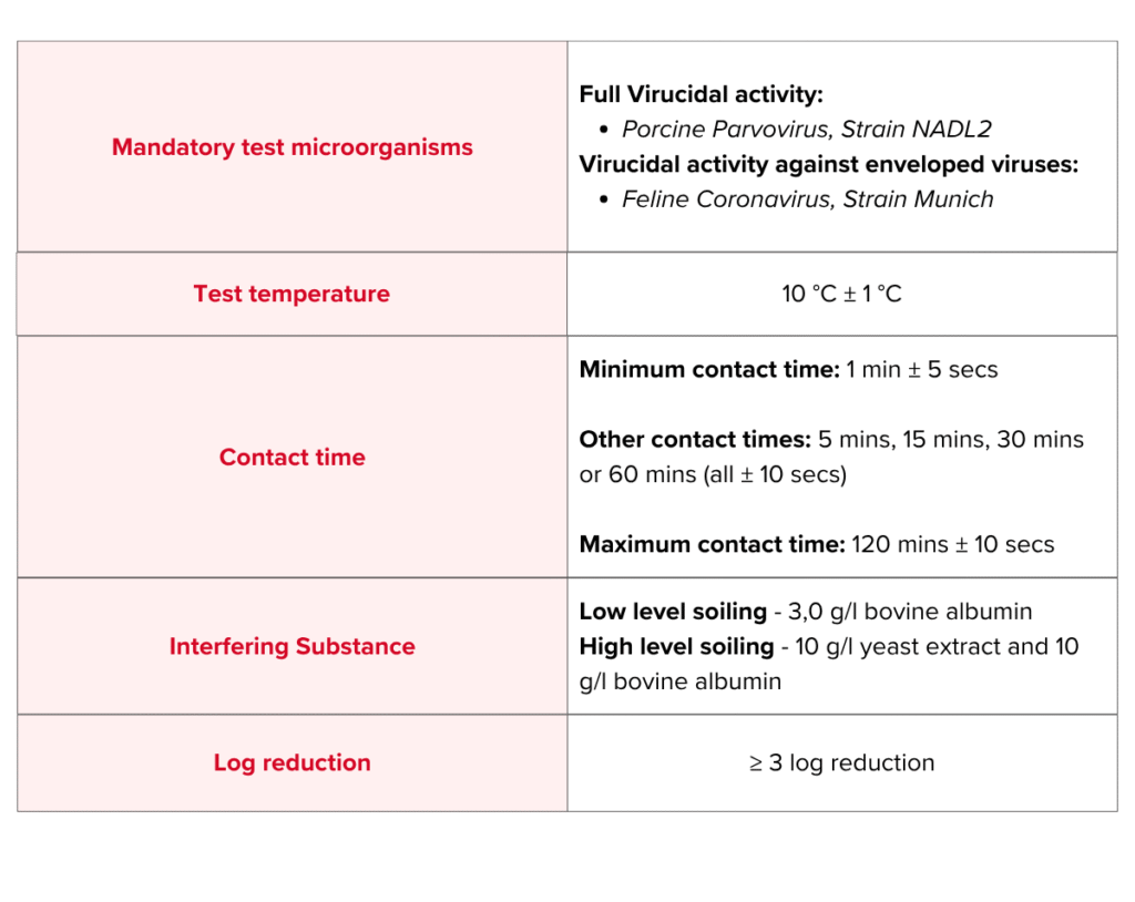 - To claim virucidal activity, test sample must show a minimum log reduction of 3 in the virus titre.