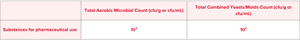 Table 2. Acceptance Criteria for Microbiological Quality of Nonsterile Substances